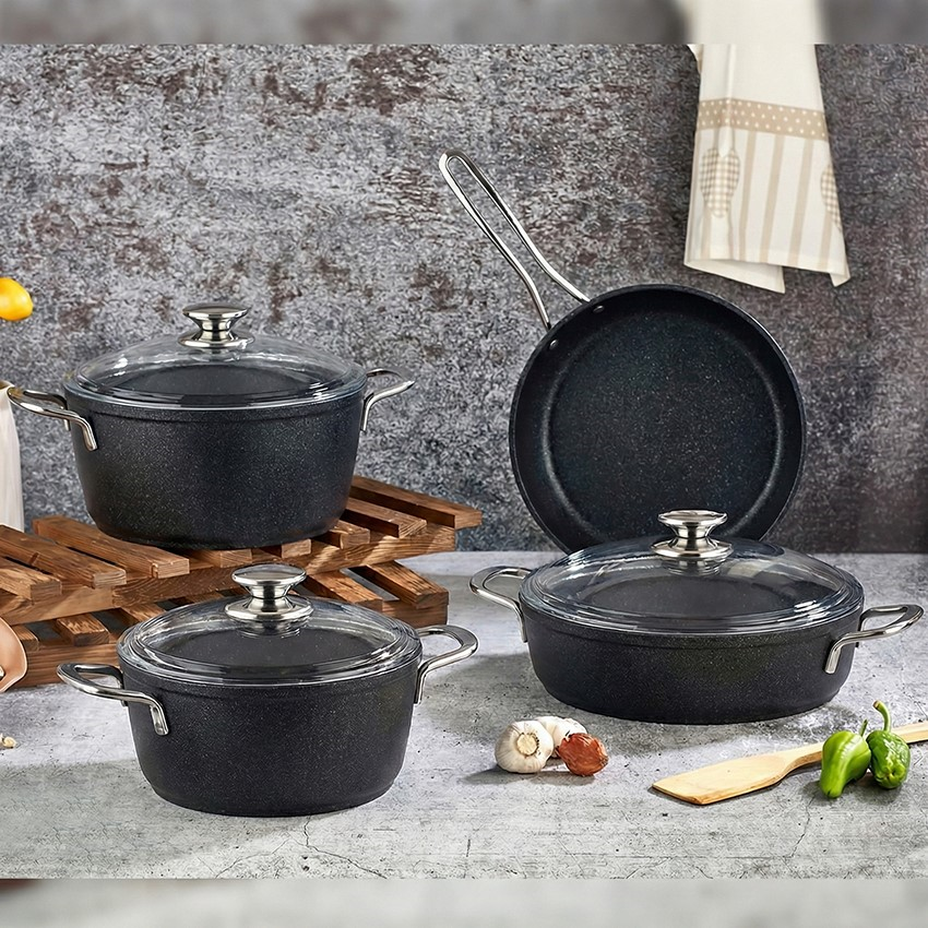 FMS 7 PARÇA GRANİT TENCERE SET GALAXY SİYAH METAL (T5004GLXS)