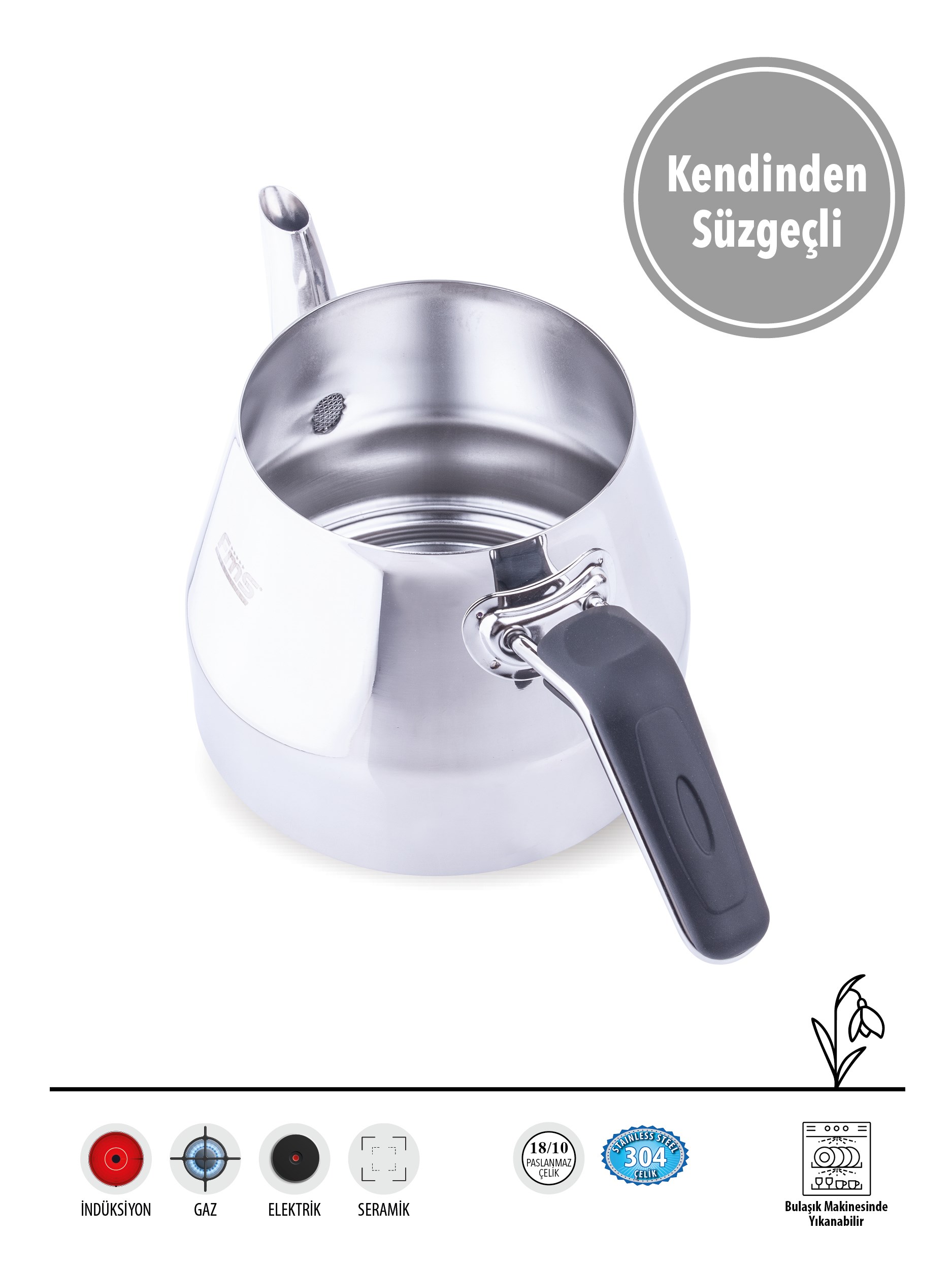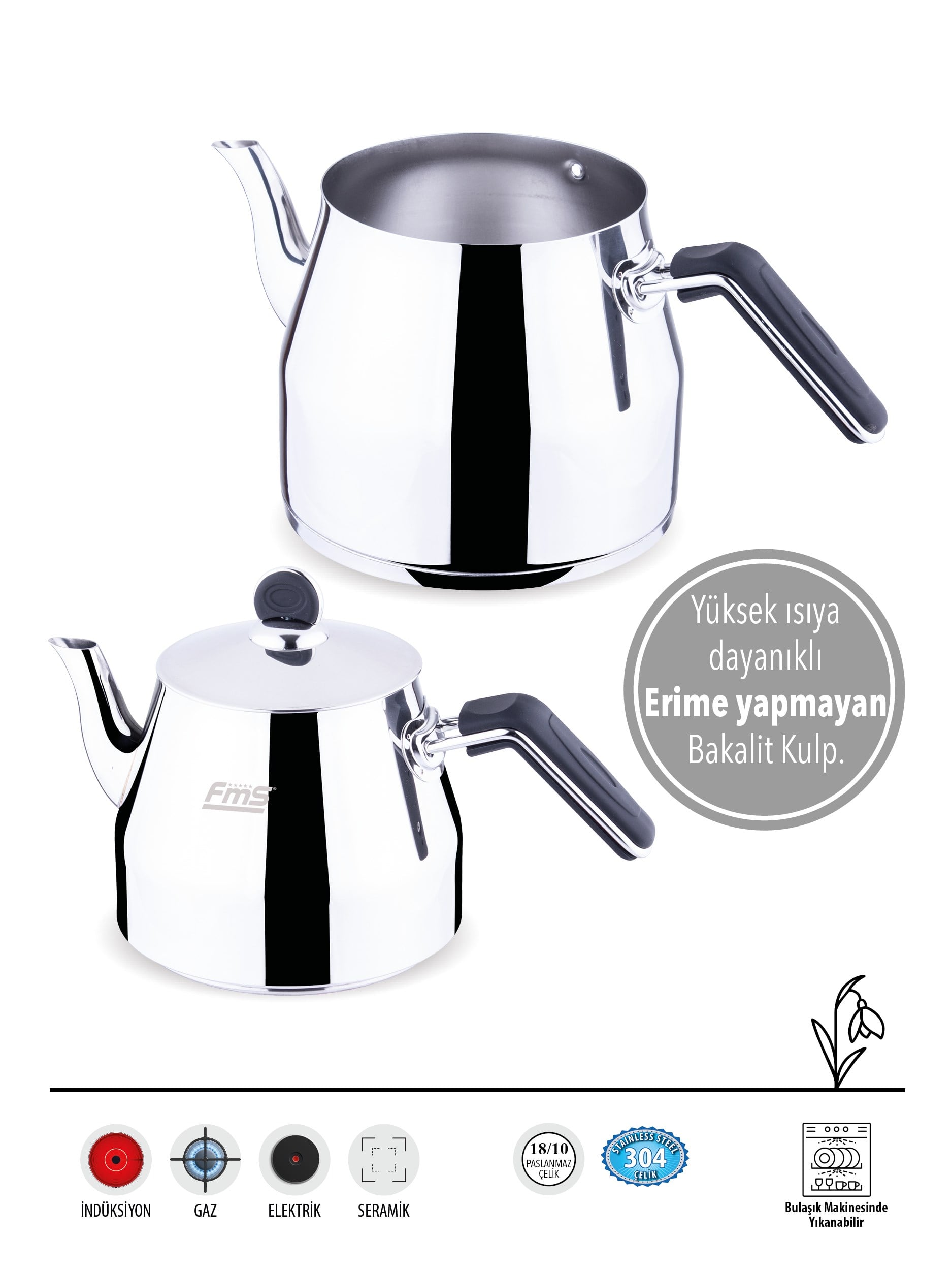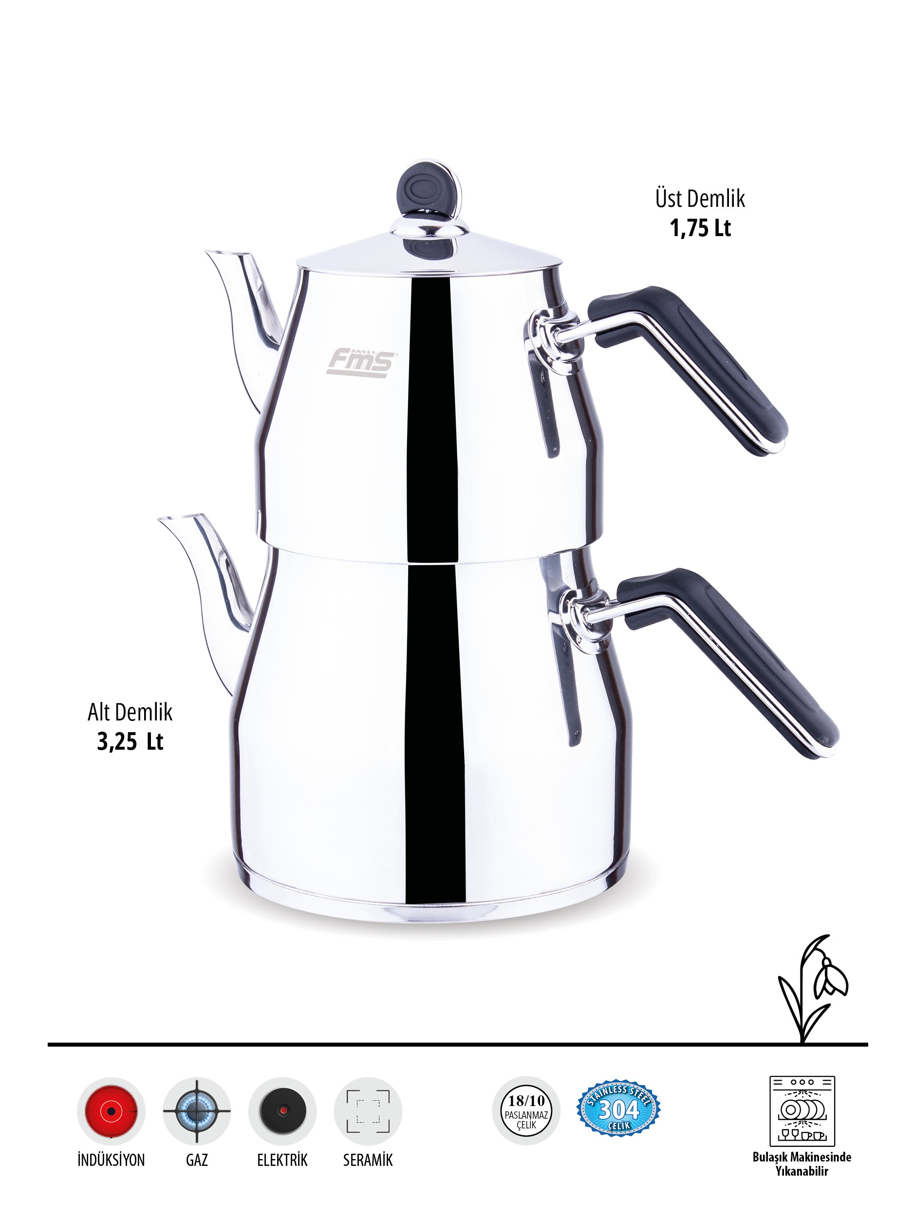 FMS Mega Aile Çaydanlık |Siyah Metal| Süzgülü|18/10 Paslanmaz | İndüksiyon Uyumlu | 1.75 LT + 3.25 LT (4073)